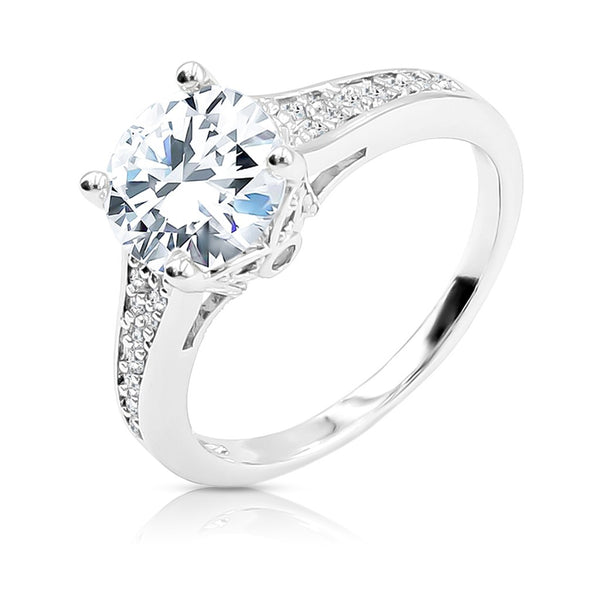 SO SEOUL Angelica Cathedral Solitaire Diamond Simulant Zirconia 2 CARAT Pave Setting Silver Ring
