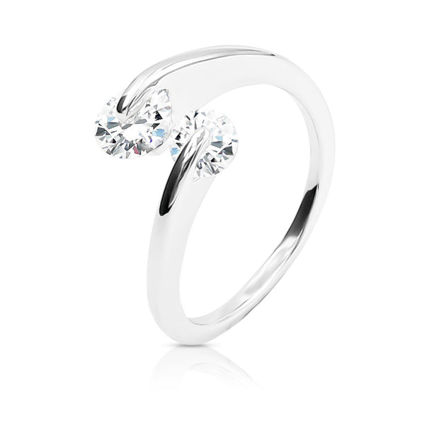 SO SEOUL Artemis Duo 0.5 & 0.25 CARAT Round Brilliant Cut Diamond Simulant Solitaire Silver Ring