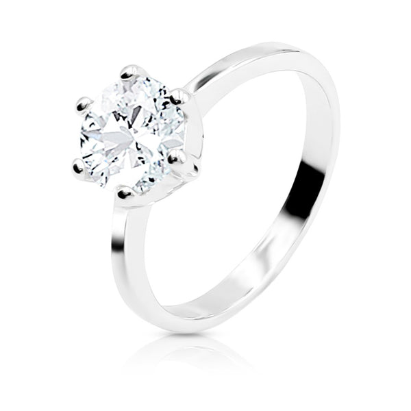SO SEOUL Athena 1.25 CARAT Brilliant Cut Diamond Simulant Zirconia in Classic 6-Prong Rhodium Setting Ring