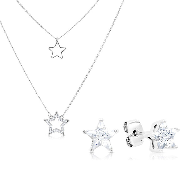 The SO SEOUL Stellar Grace jewelry set is a tribute to cosmic beauty, featuring a double-star pendant necklace and matching star stud earrings. Each piece is crafted with precision, showcasing diamond simulants that glitter with stellar brilliance. This set promises to be a versatile addition to any jewelry collection, perfect for gifting or personal indulgence.