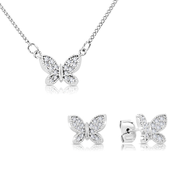 Flutter into the spotlight with the SO SEOUL Caria 3D Butterfly Jewelry Set. This captivating set features stud earrings and a pendant necklace, each adorned with a three-dimensional butterfly inlaid with shimmering diamond simulant cubic zirconia. Perfect for adding a touch of whimsy and elegance, this set is ideal for those who wish to make a graceful statement.