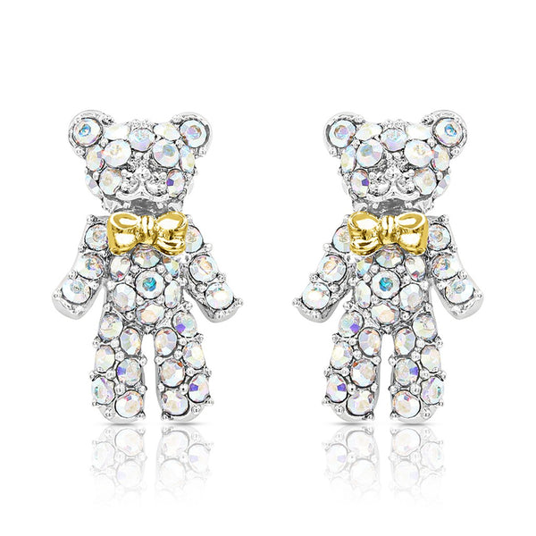 SO SEOUL Hello Teddy Bear Aurore Boreale Crystals and Mixed Metal Bow Stud Earrings