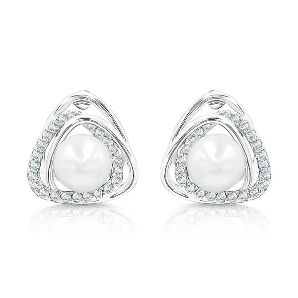 SO SEOUL Callista Twisted Diamond Simulant with Pearl Center Pierced Stud Earrings