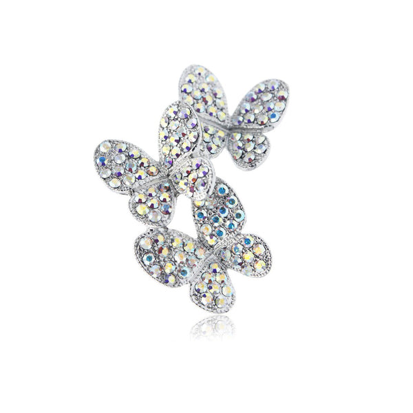 SO SEOUL Caria Triple Butterfly Brooch with Twin Aurore Boreale Austrian Crystals and Rollover Clasp - A Perfect Gift for Moms