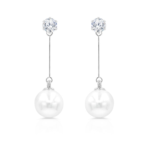 Load image into Gallery viewer, SO SEOUL Everleigh Classic Diamond Simulant Cubic Zircon Long Dangle Pearl Pierced Stud Earrings