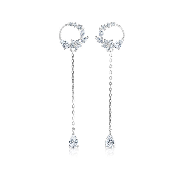 SO SEOUL Everleigh Whirl of Flowers Diamond Simulant Dangling Teardrop Stud Earrings