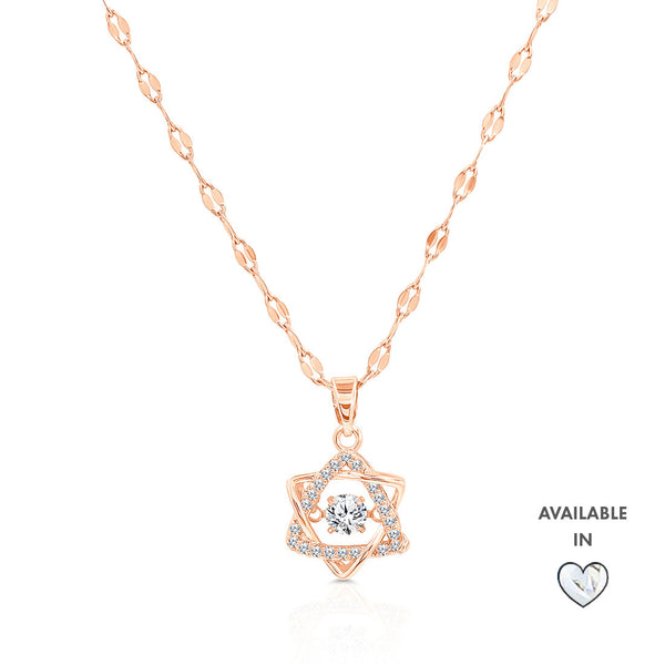 Dazzle with cosmic elegance with the SO SEOUL Galactic Sunstar Diamond Simulant Pendant, where celestial design meets urban glamour. Crafted with precision, this pendant boasts a radiant sunstar motif, centered with a sparkling diamond simulant cubic zirconia that captures the essence of a star's twinkle. Available in the cool allure of rhodium or the blush romance of rose gold, each pendant hangs gracefully from a delicate chain, reflecting a seamless blend of luxury and versatility.