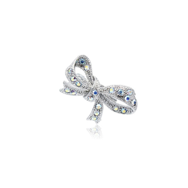 SO SEOUL Elegant Ribbon Bow Brooch with Aurore Boreale Austrian Crystals - Versatile Dainty Baby Pin for Hijabs and Kerongsang