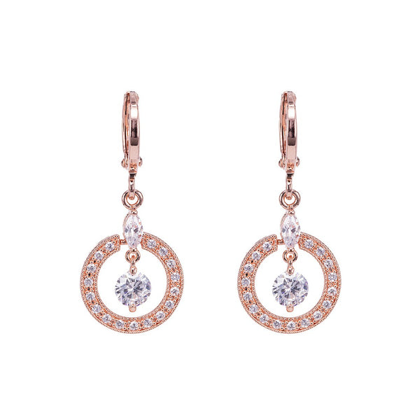 SO SEOUL Rose Gold Halo Open Circle Dangle Earrings with Solitaire Diamond Simulant Cubic Zirconia