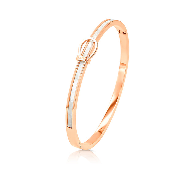 SO SEOUL Harper 3D Belt Buckle Mother of Pearl Rose Gold Side Hinged Bangle