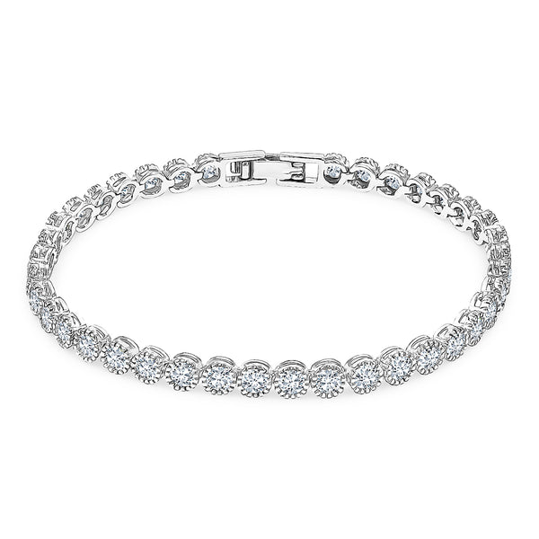 SO SEOUL Lustrous Glamour Classic Tennis Bracelet with Diamond Simulant Round Cut Stones Rhodium Plated