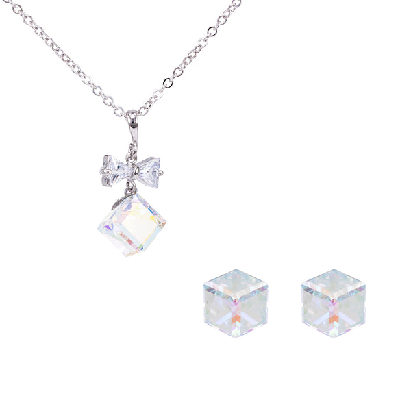 Indulge in the luminescent allure of the SO SEOUL Sequoia Collection with this enchanting Swarovski® Crystal Pendant Necklace and Stud Earrings Set. Available in two captivating crystal finishes—Aurore Boreale, with its dance of rainbow hues, or the Vitrail Light, with its shifting pastel reflections—this set promises to add a mystical touch to any wardrobe. The necklace features a stunning crystal pendant, gracefully suspended from a delicate chain, while the matching stud earrings are a subtle nod to elegance, perfect for any occasion. Whether it's a day at work or an evening gala, this SO SEOUL set will ensure you carry the sparkle of the stars with you.